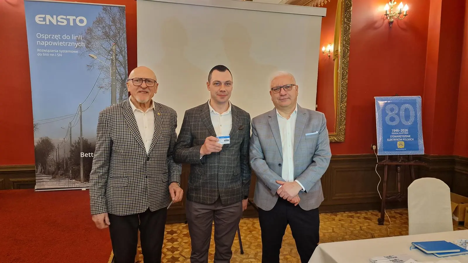 W kolejnej części spotkania, prezes Oddziału Olsztyńskiego SEP kol. Jarosław Kantel i kol. Mirosław Milejski wręczyli legitymację członkowską SEP nowym członkom: kol. Krzysztofowi Rolce, kol. Dawidowi Tarka i kol. Pawłowi Raszkowskiemu.