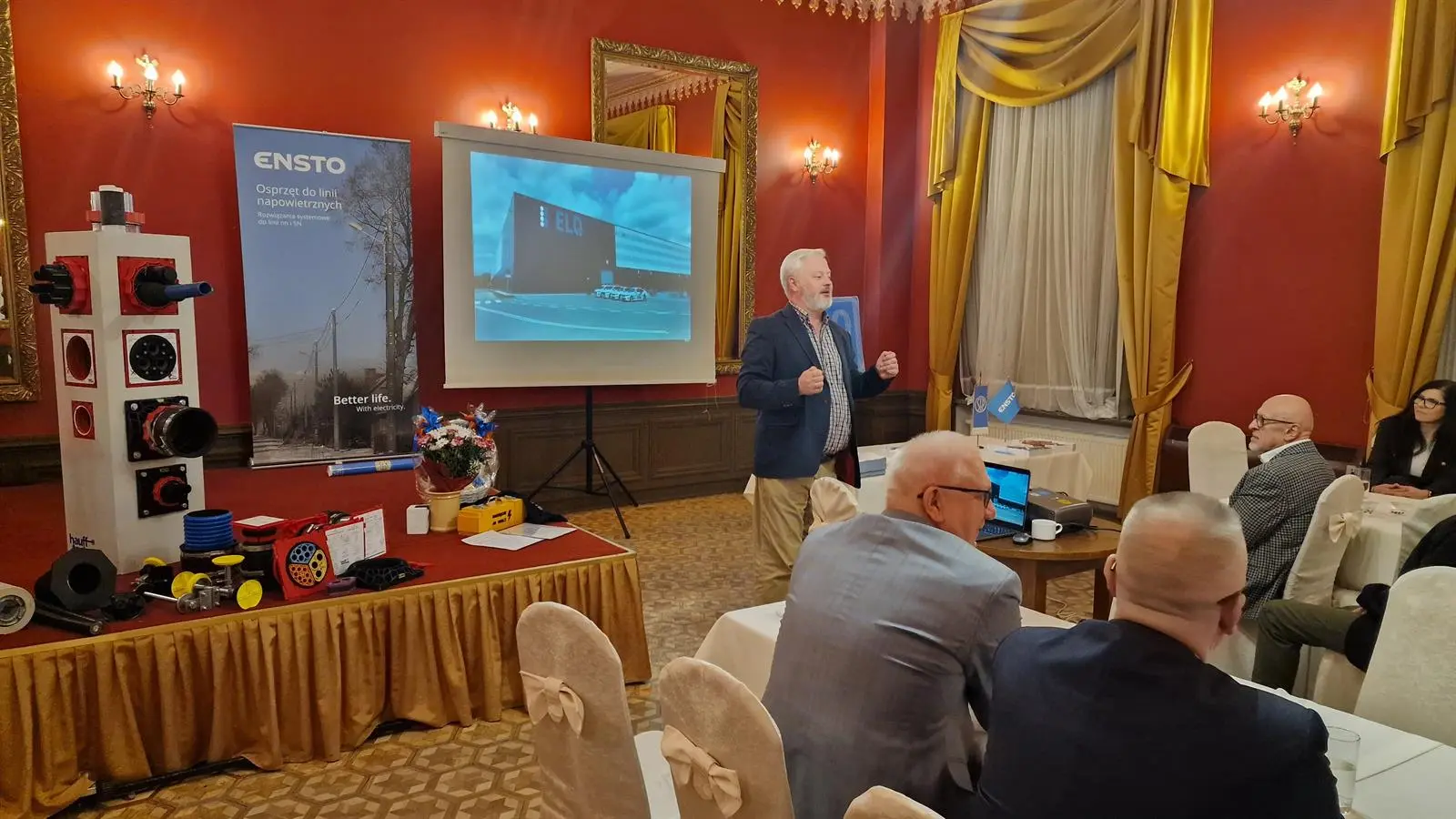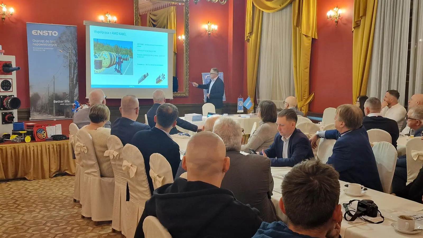 • Jako pierwszy wystąpił Pan Arkadiusz Majda z firmy ENSTO, który przedstawił prezentację pt. „33 lata ENSTO w Polsce – nasz wkład w rozwój sieci dystrybucyjnych niskiego i średniego napięcia”.
